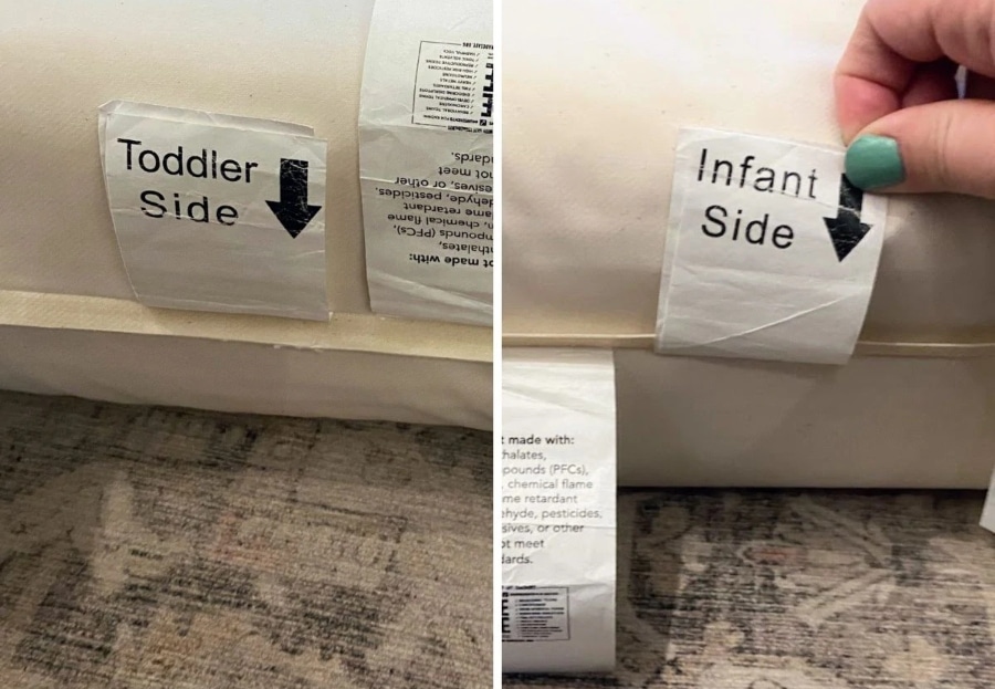 To ensure your baby sleeps safely, make sure you know which side of the bed is facing up.