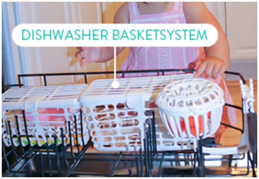 4. Use a dishwasher basket to keep small bottles, pacifiers, and toys out of the dishwasher’s lower portion.